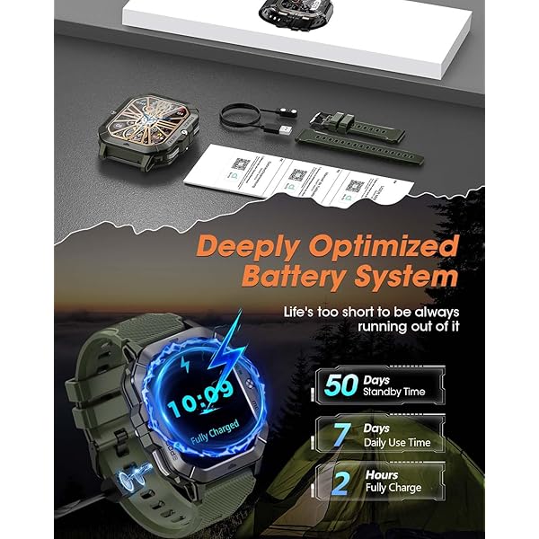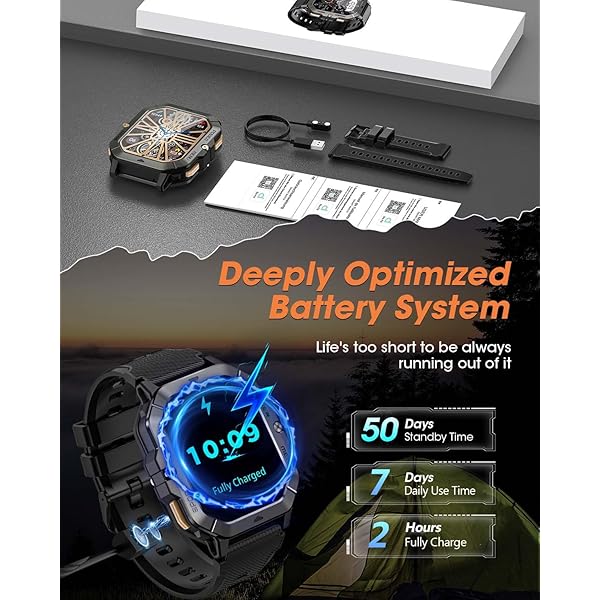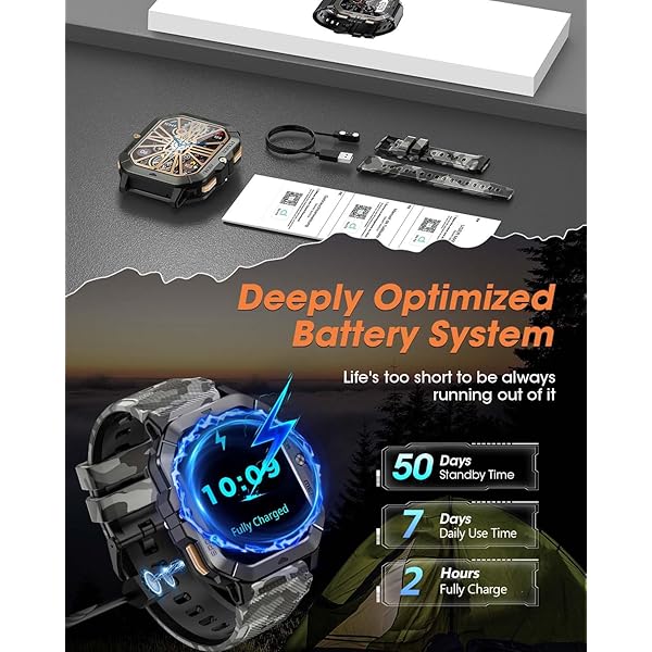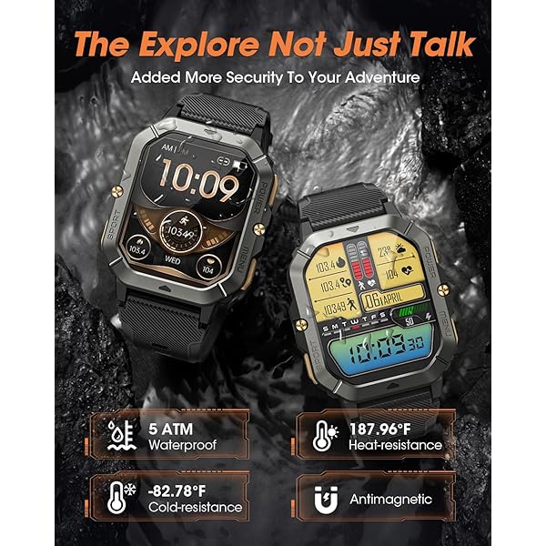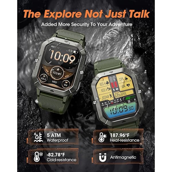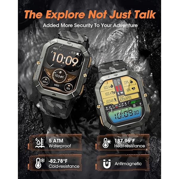 OUTDOOR ADVENTURE WITH YOU - This military outdoor smartwatch is made of special composite material and sturdy aluminum alloy bezel, which has gone through rigorous military-grade testing and supports heat resistance up to 187.96 °F, cold resistance up to -82.78 °F, waterproof, low-pressure resistant, and dust-proof, fearless of harsh environments, making it the perfect companion for outdoor adventures.
